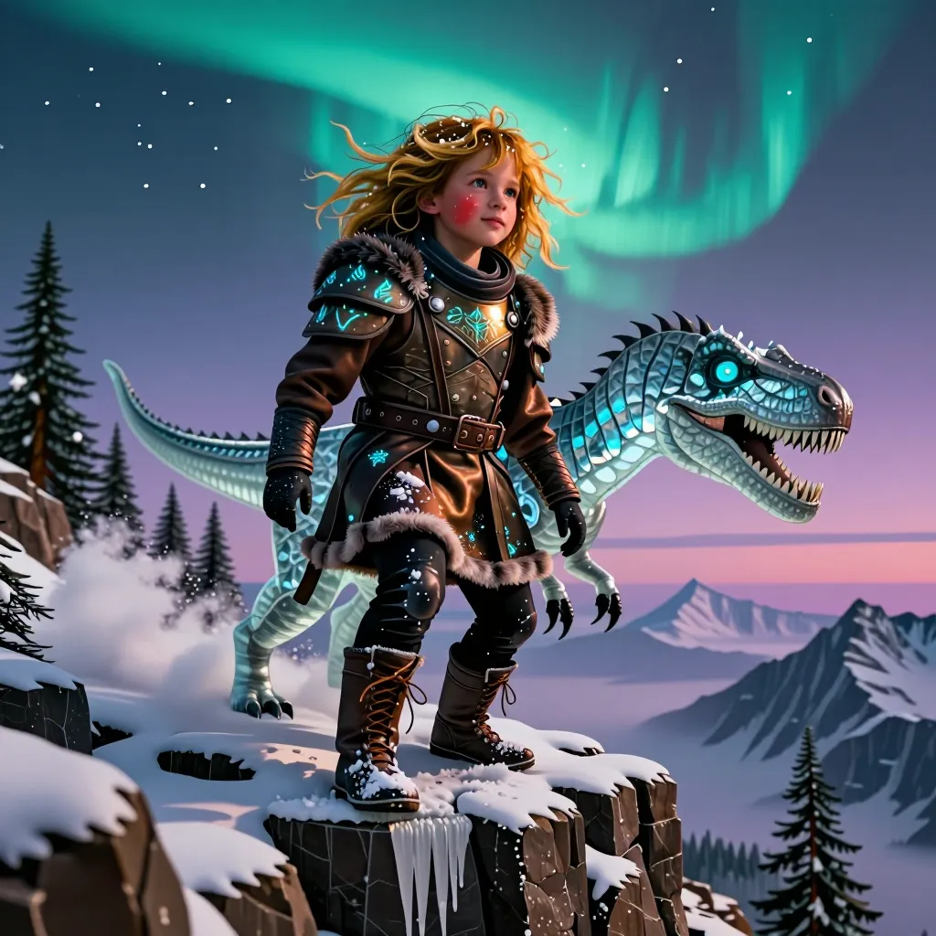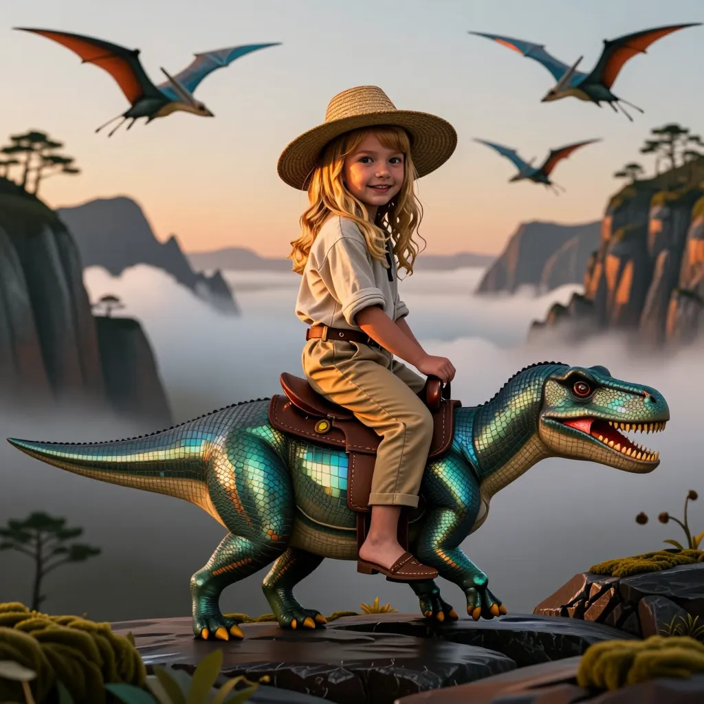 Riding ice age dinosaur