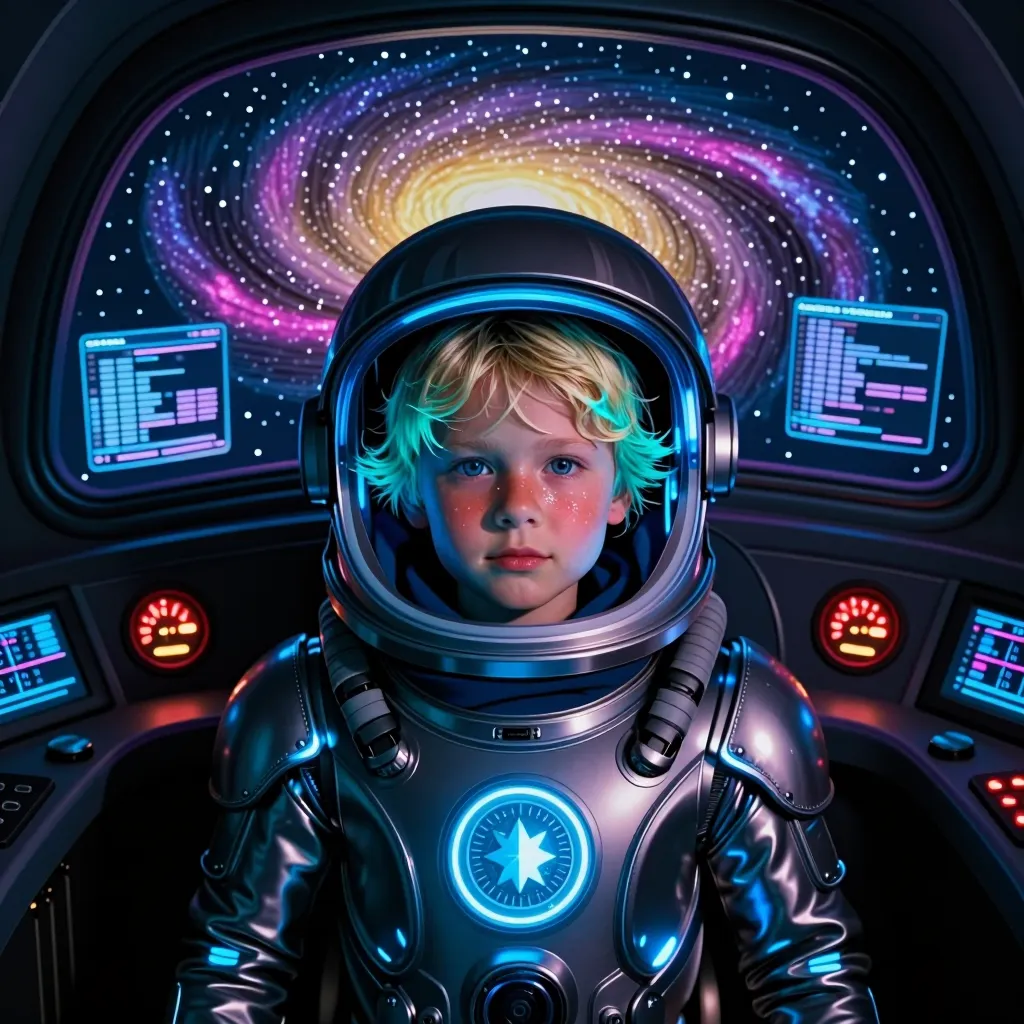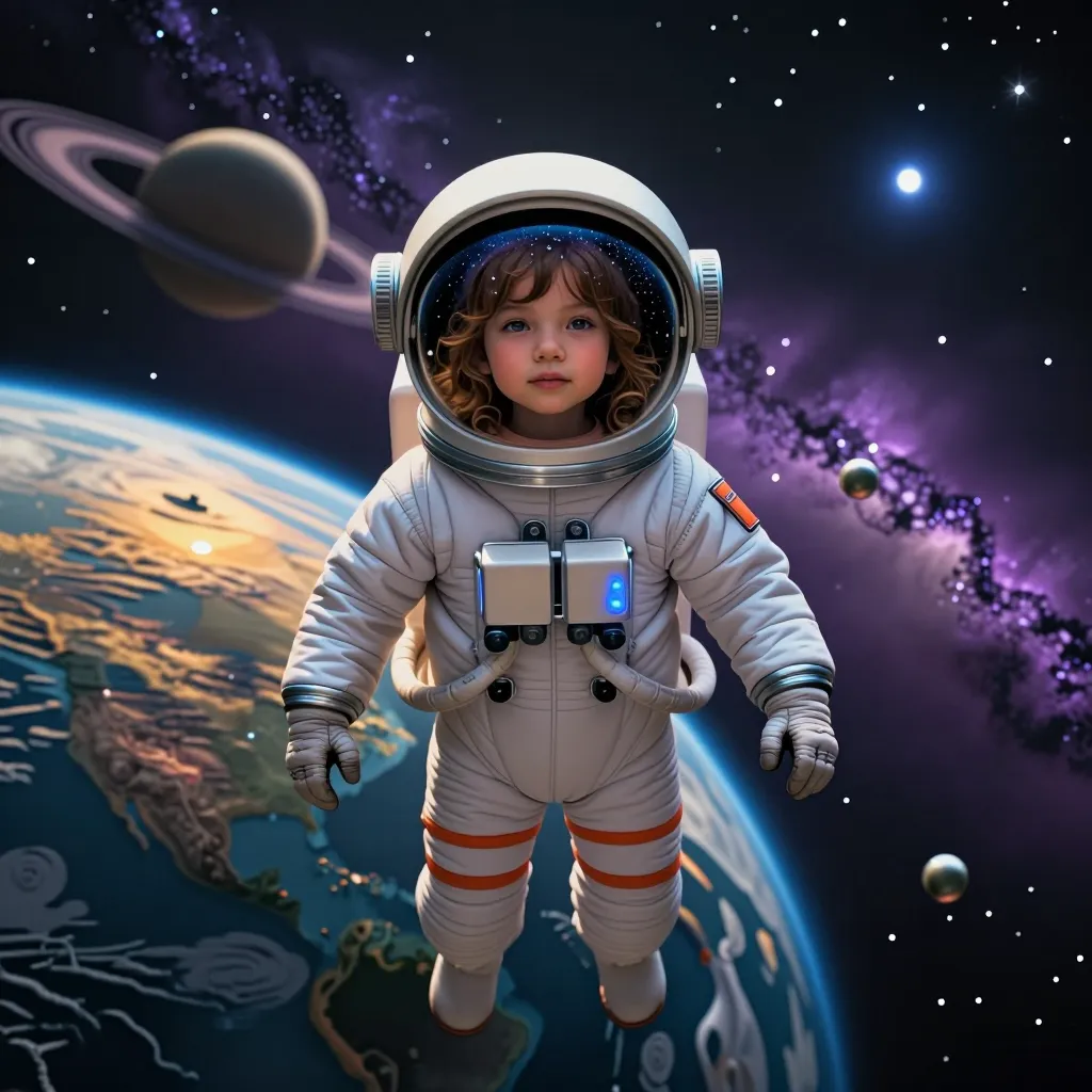 Girl astronaut on cosmic journey