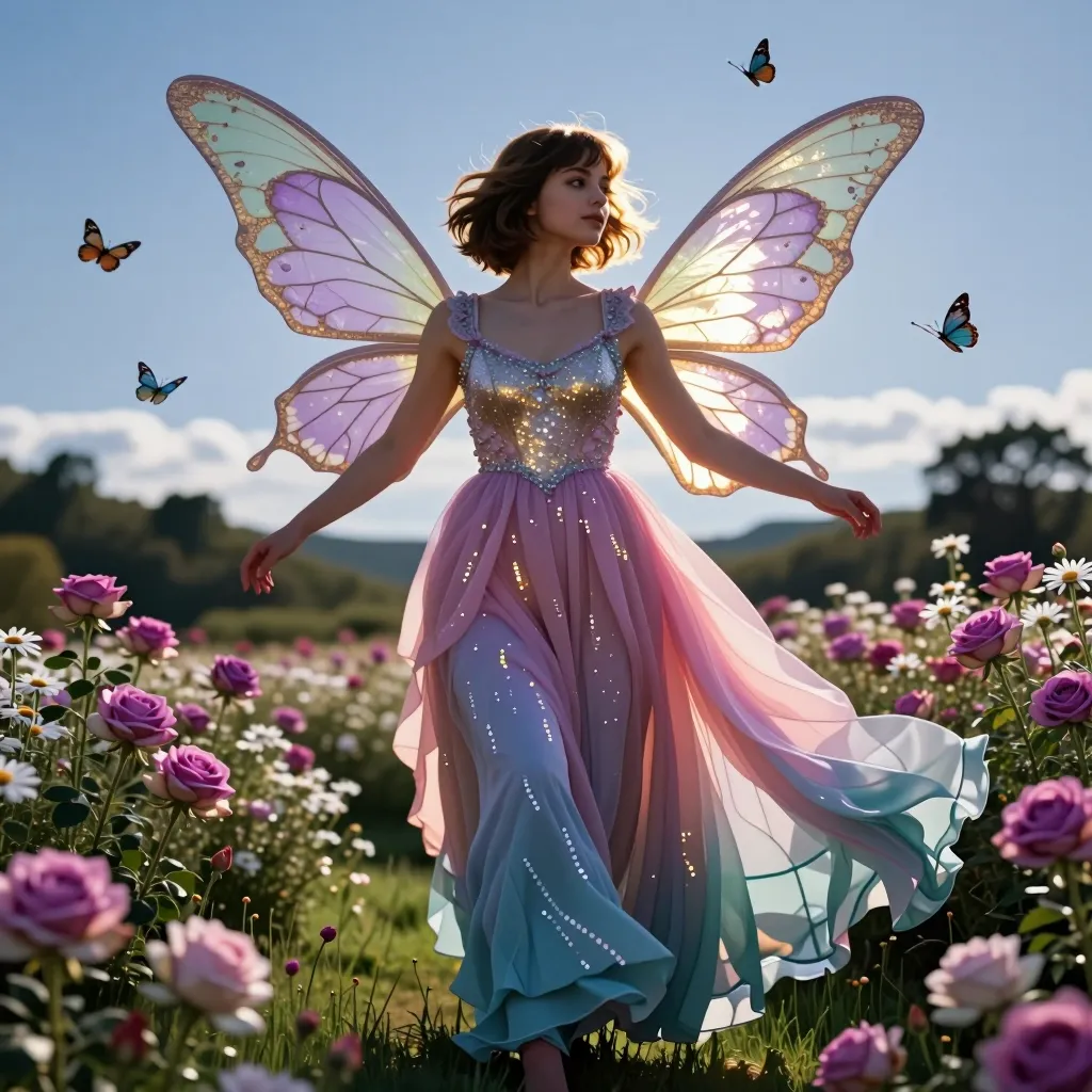 Fairy in butterfly meadow