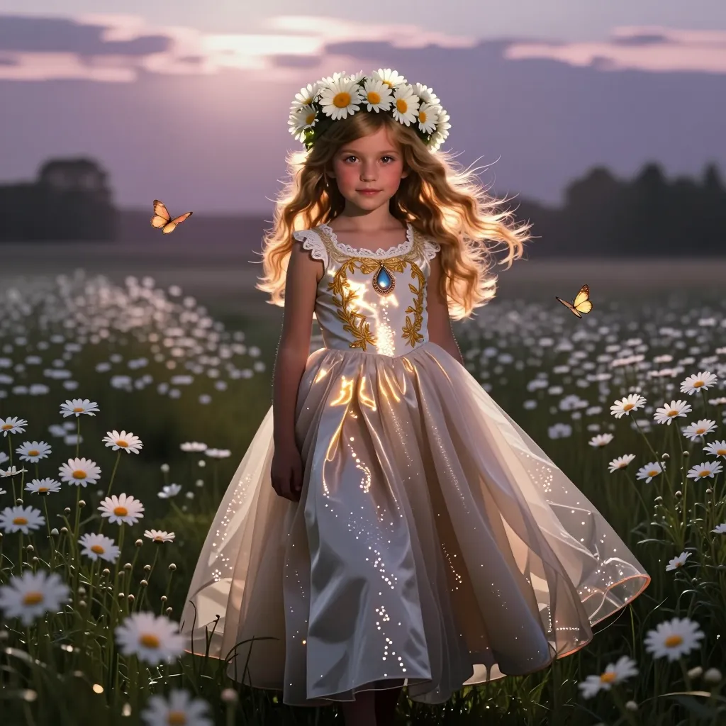 Sweet princess in daisy meadow