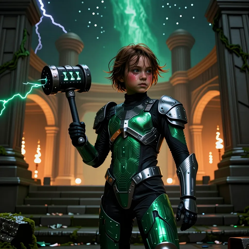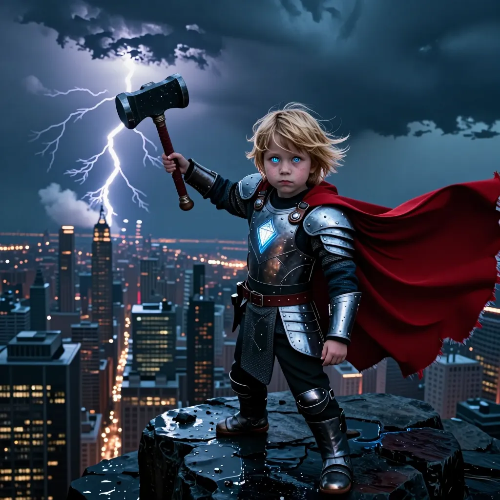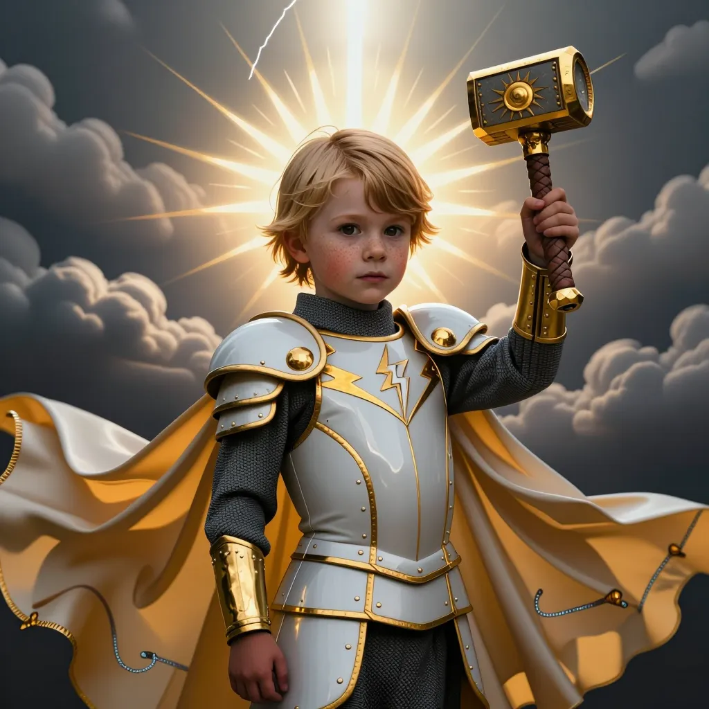 Mighty hero with sun hammer