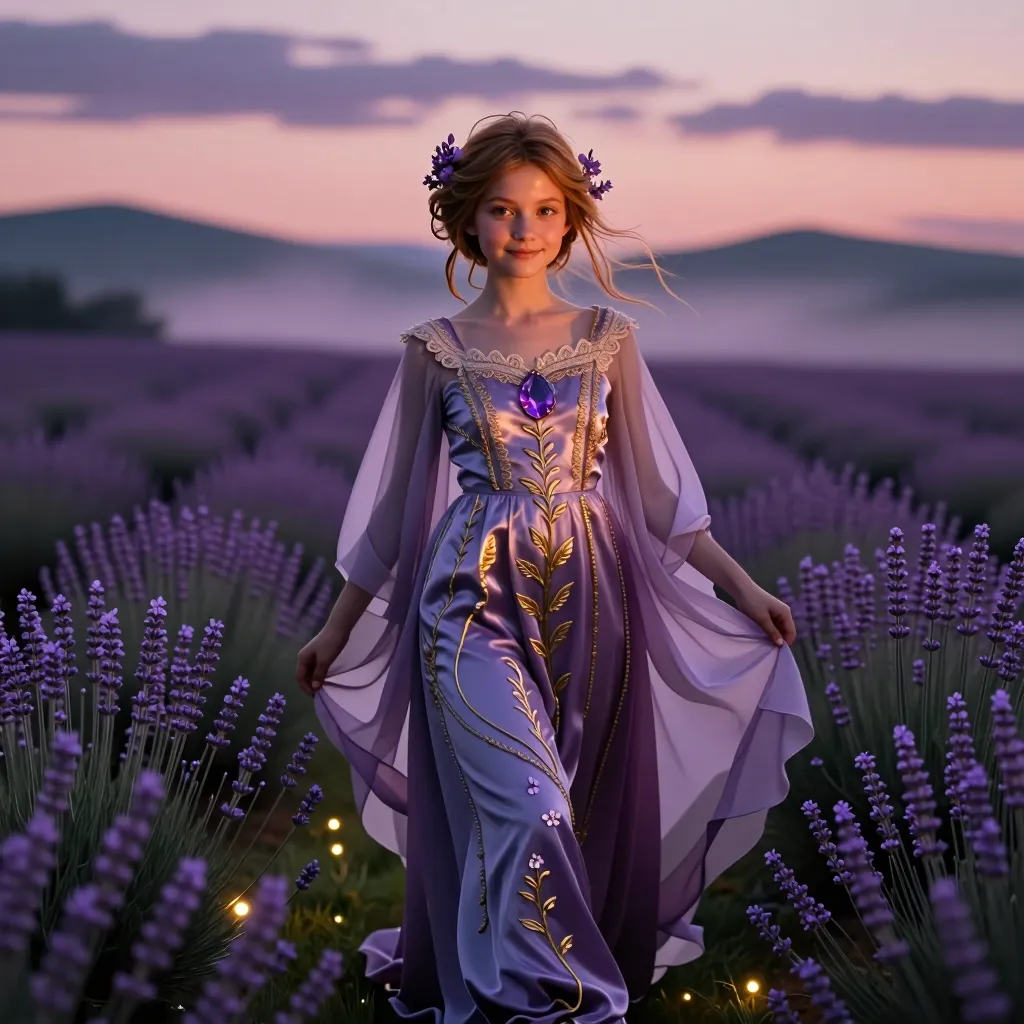 Dreamy princess in lavender fields