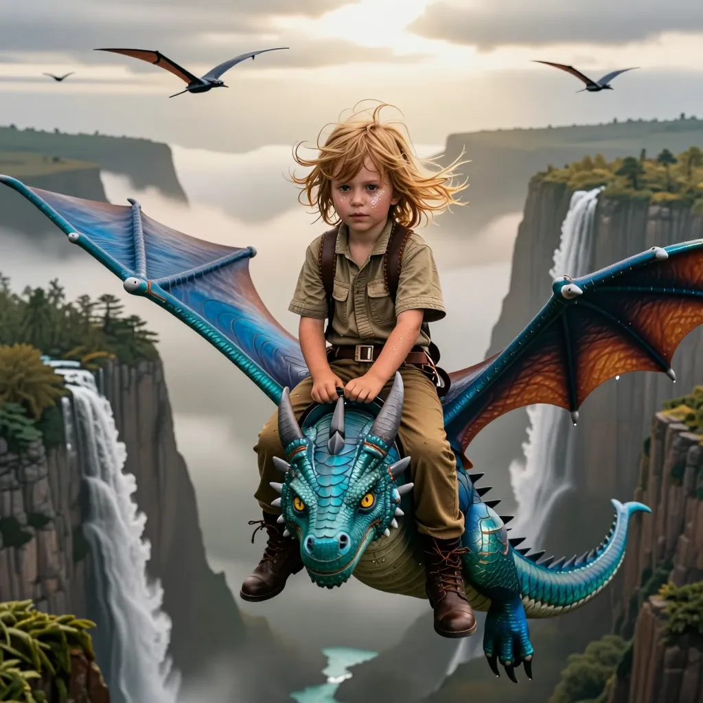 Girl soaring on pterodactyl