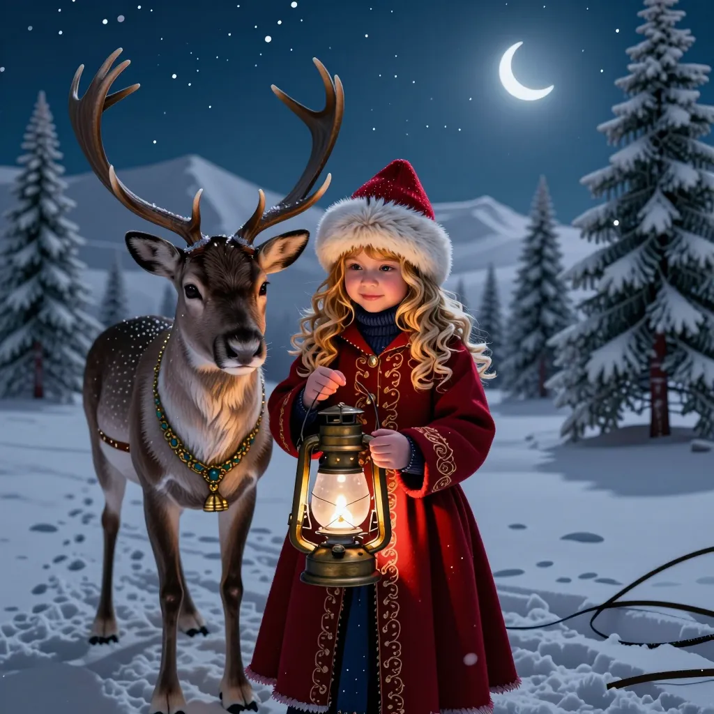 Magical reindeer with lantern