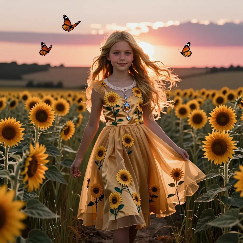 Bright princess in sunflower fields