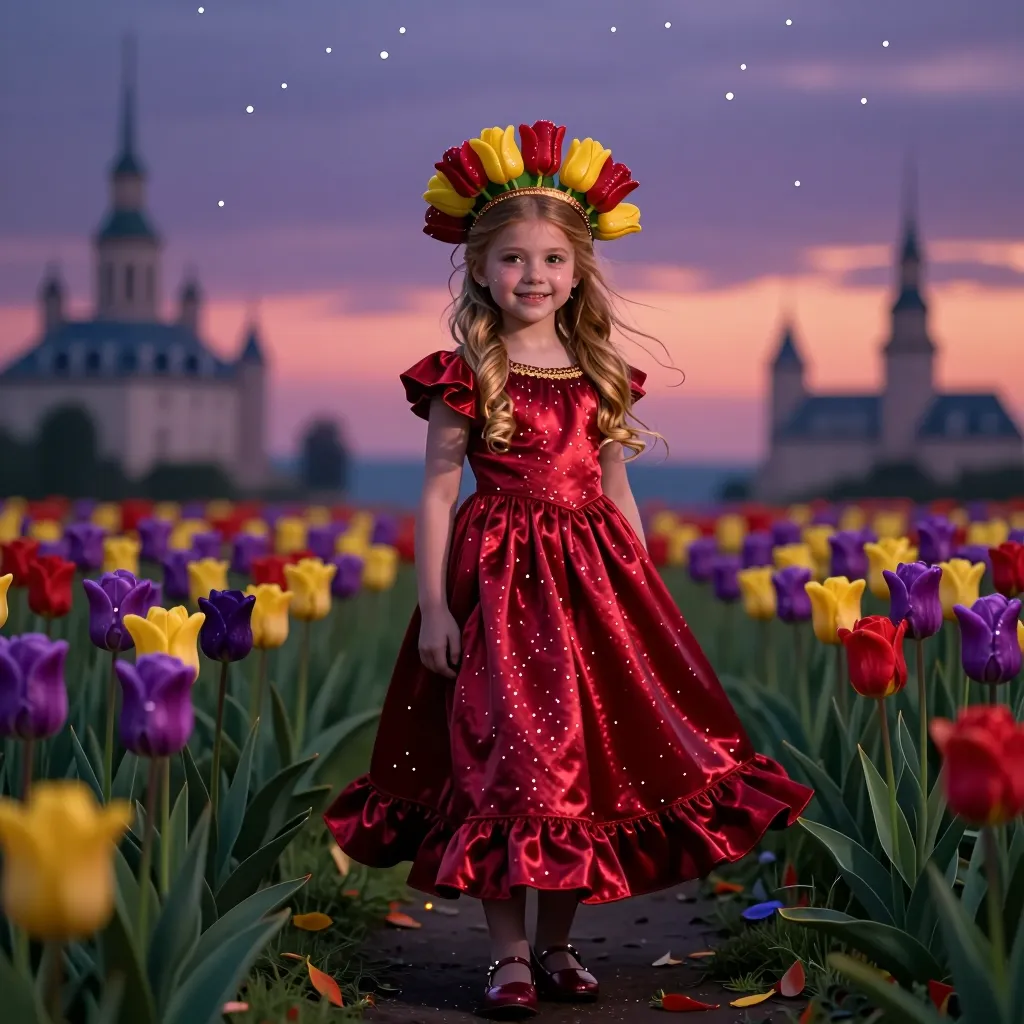 Princess in magical tulip garden