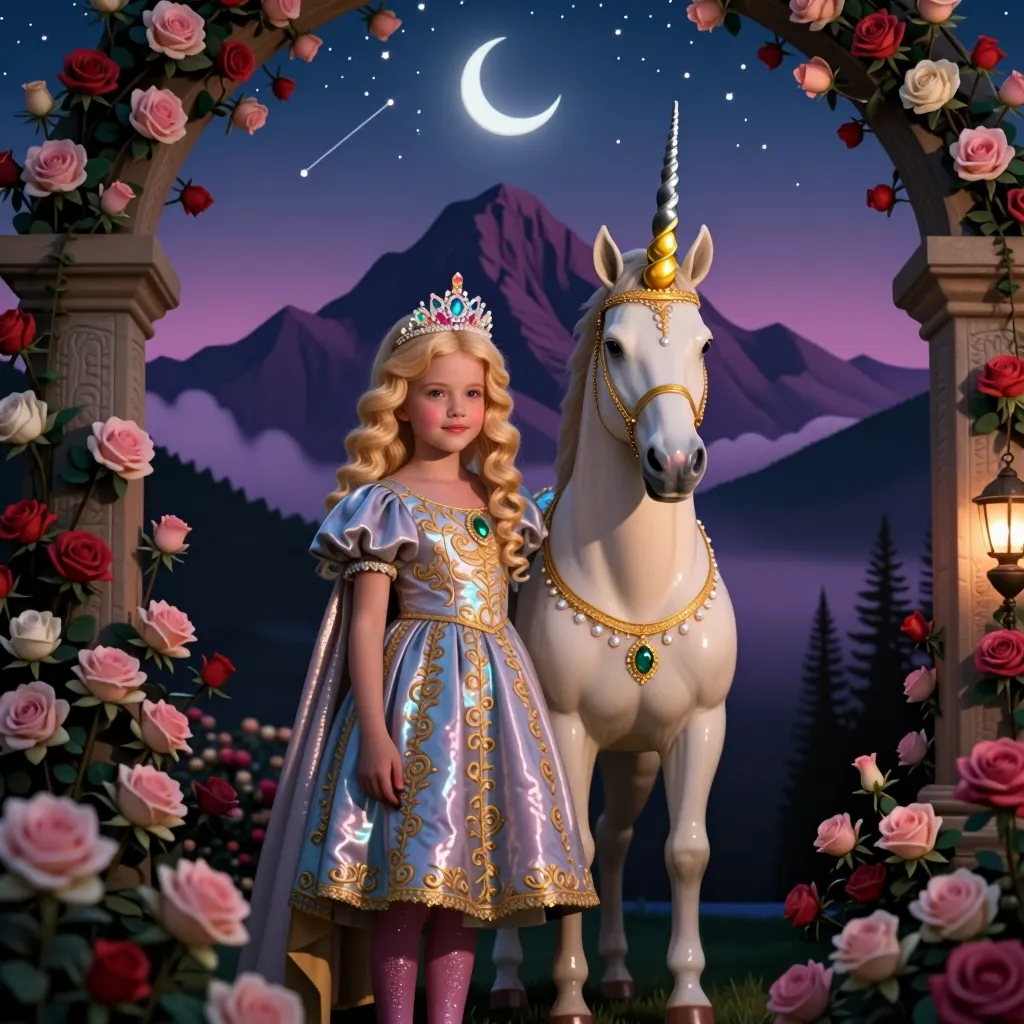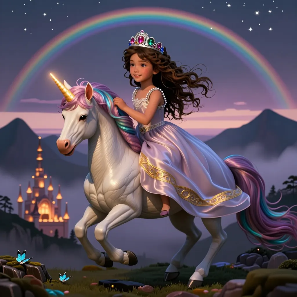 Princess riding magical unicorn
