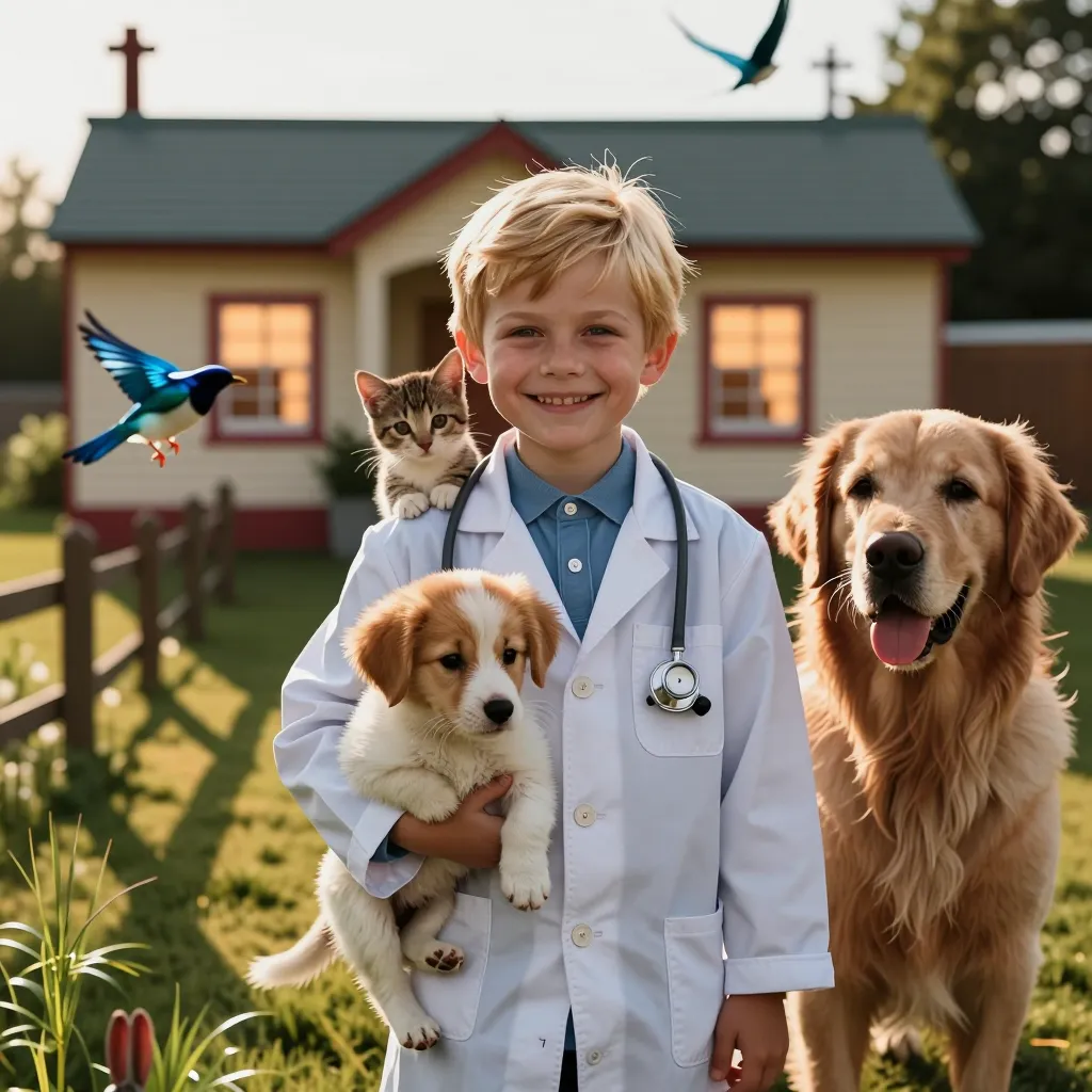 Boy vet caring for animals