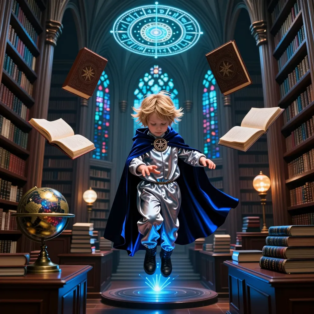 Young wizard studying spells